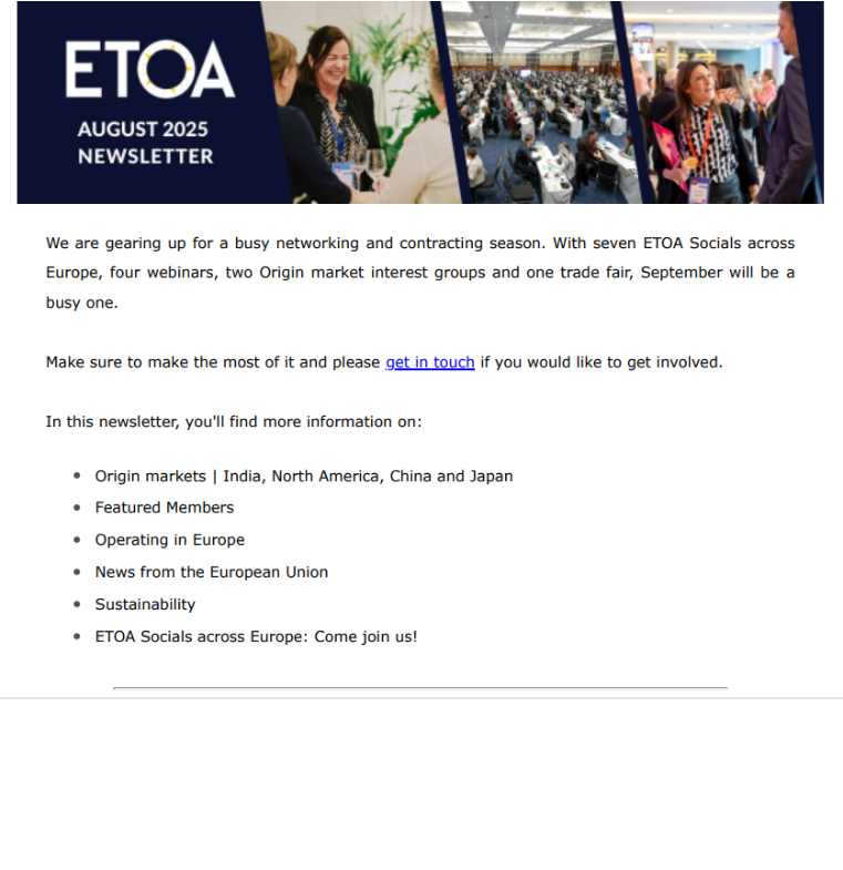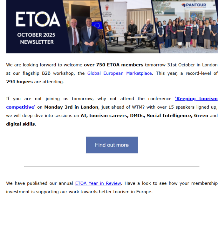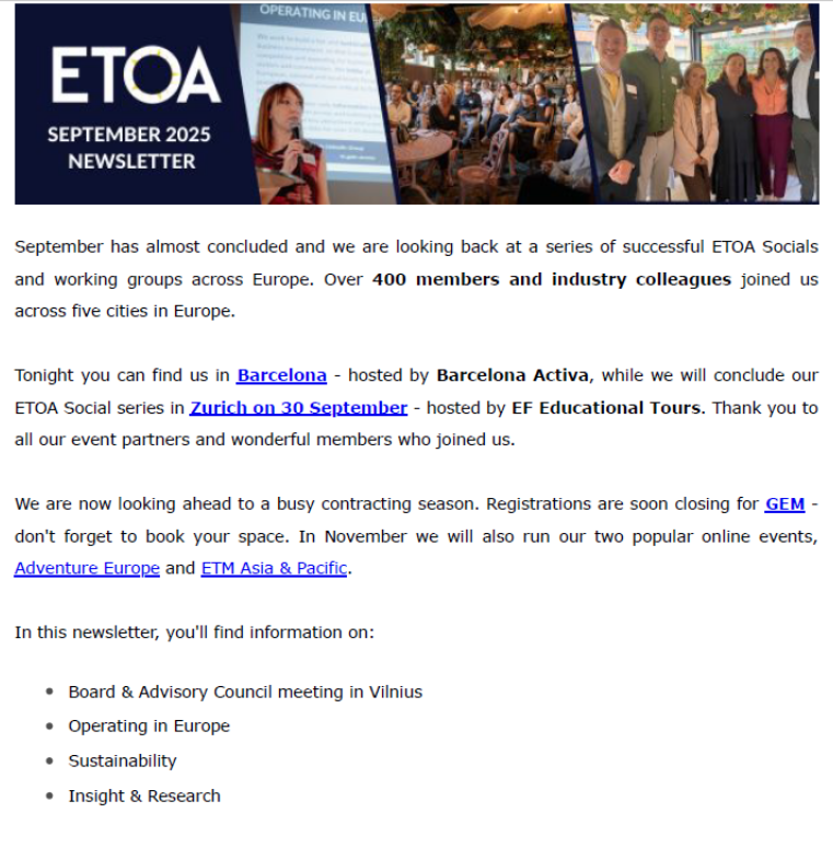 Get the latest ETOA updates on tourism trends, policy and must-attend B2B workshops delivered straight to your inbox: